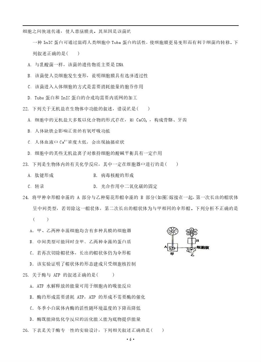 【摘要】為了同學們更好的迎接2019年的高考,下面閩州教育小編整理了福建省2019莆田第六中學高三9月月考生物試題(A卷)及參考答案,考生們可以針對題目來更好的復習哦,更多高考信息可關注閩州教育高考資訊專欄。