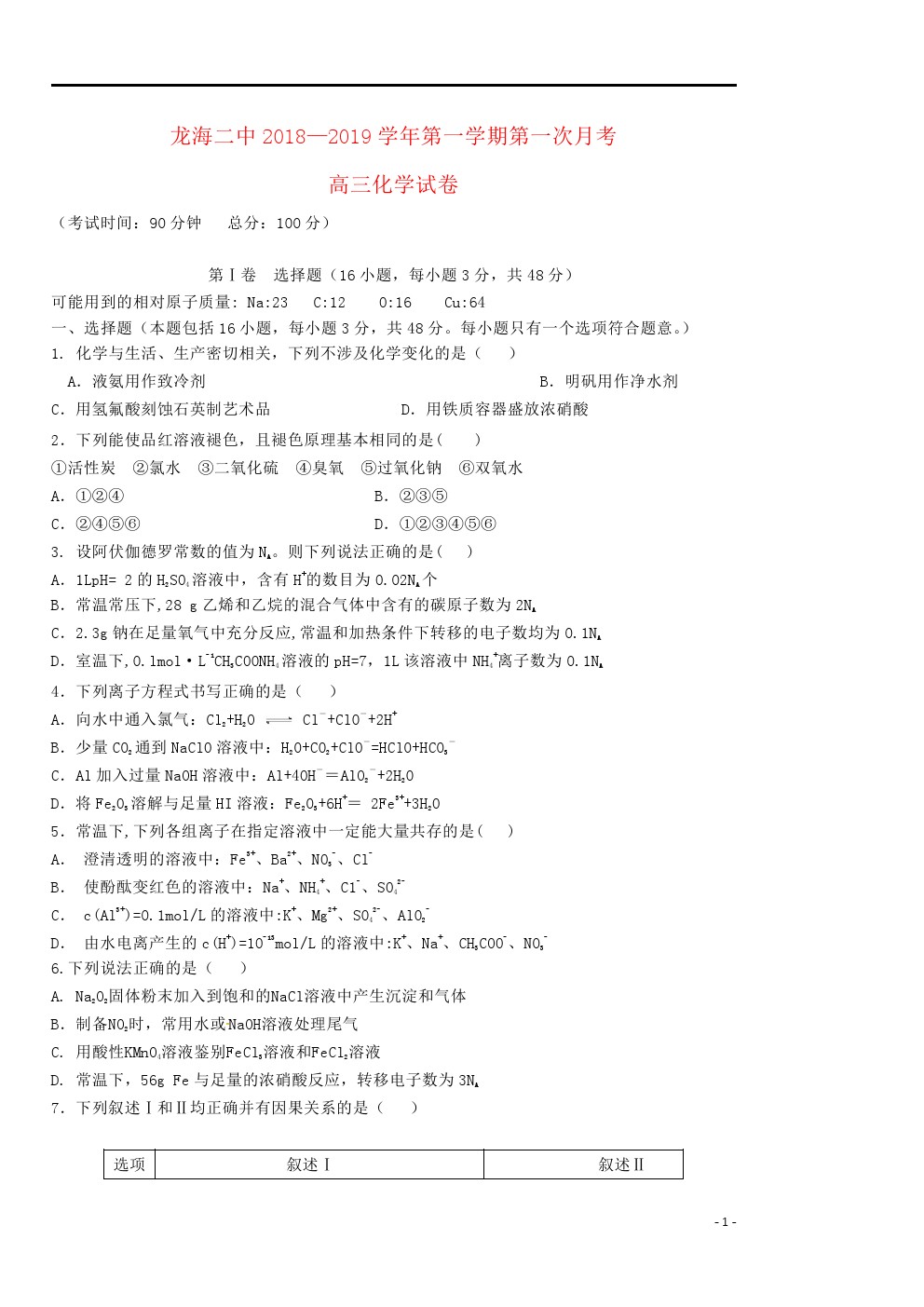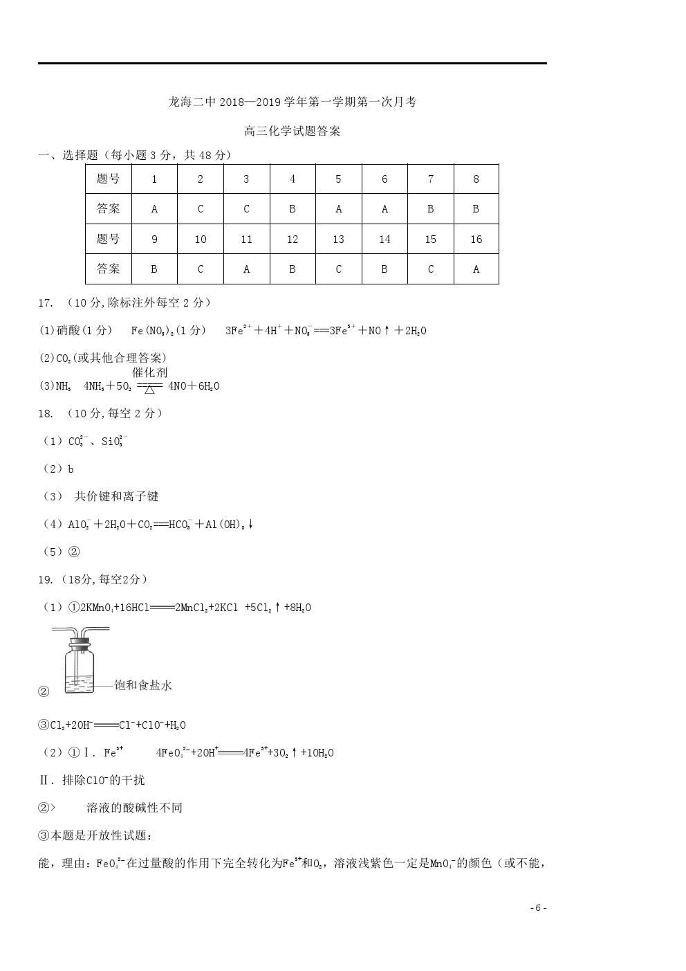 【摘要】福建省龍海市第二中學(xué)2019屆高三化學(xué)上學(xué)期第一次月考試題及答案,供大家參考,更多高考信息可關(guān)注閩州教育高考資訊專欄。