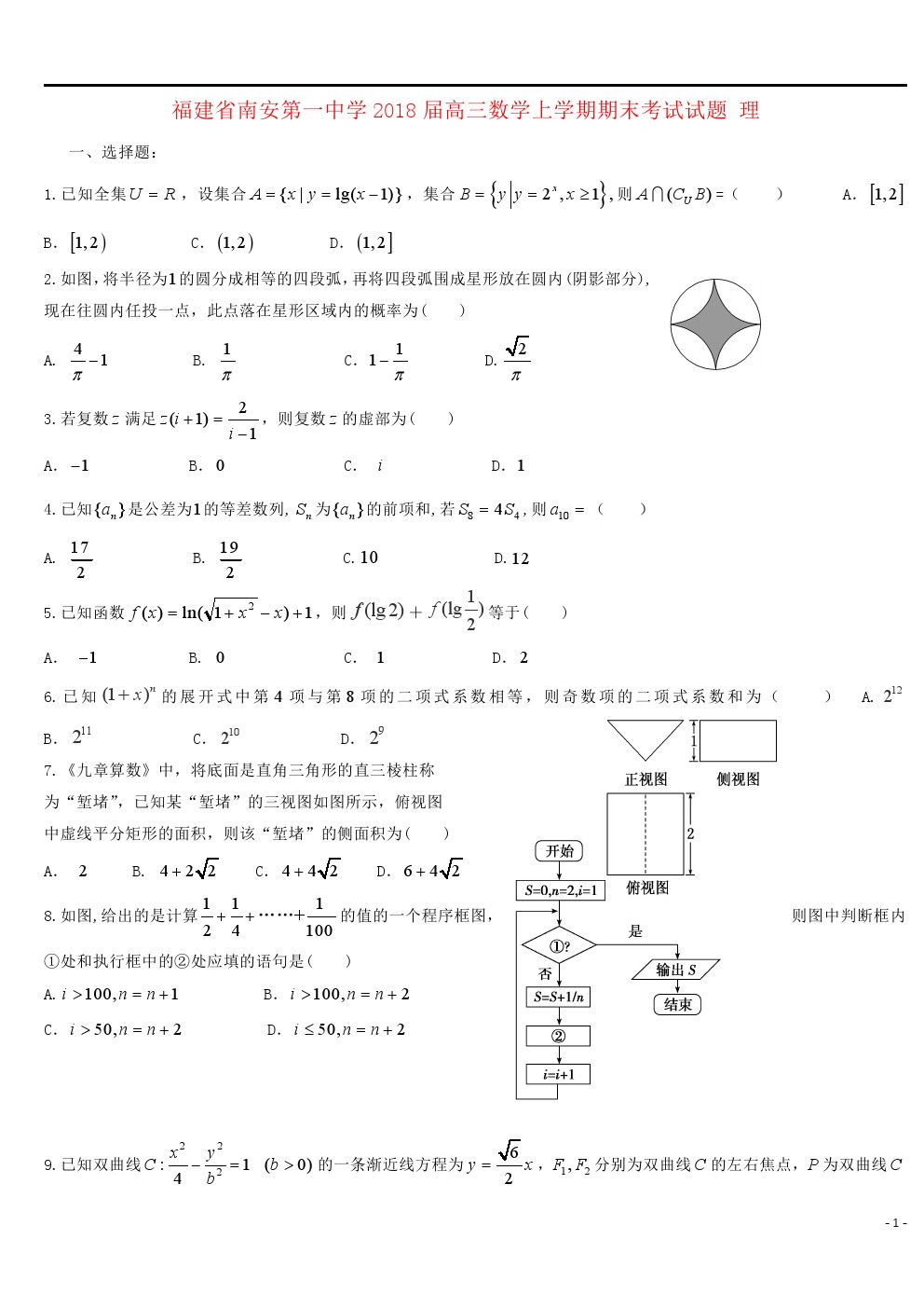 【摘要】福建省泉州市南安市2018屆高三數(shù)學(xué)(理)上學(xué)期期末考試試題及答案!供同學(xué)們參考!更多高考信息可關(guān)注閩州教育高考資訊專(zhuān)欄。