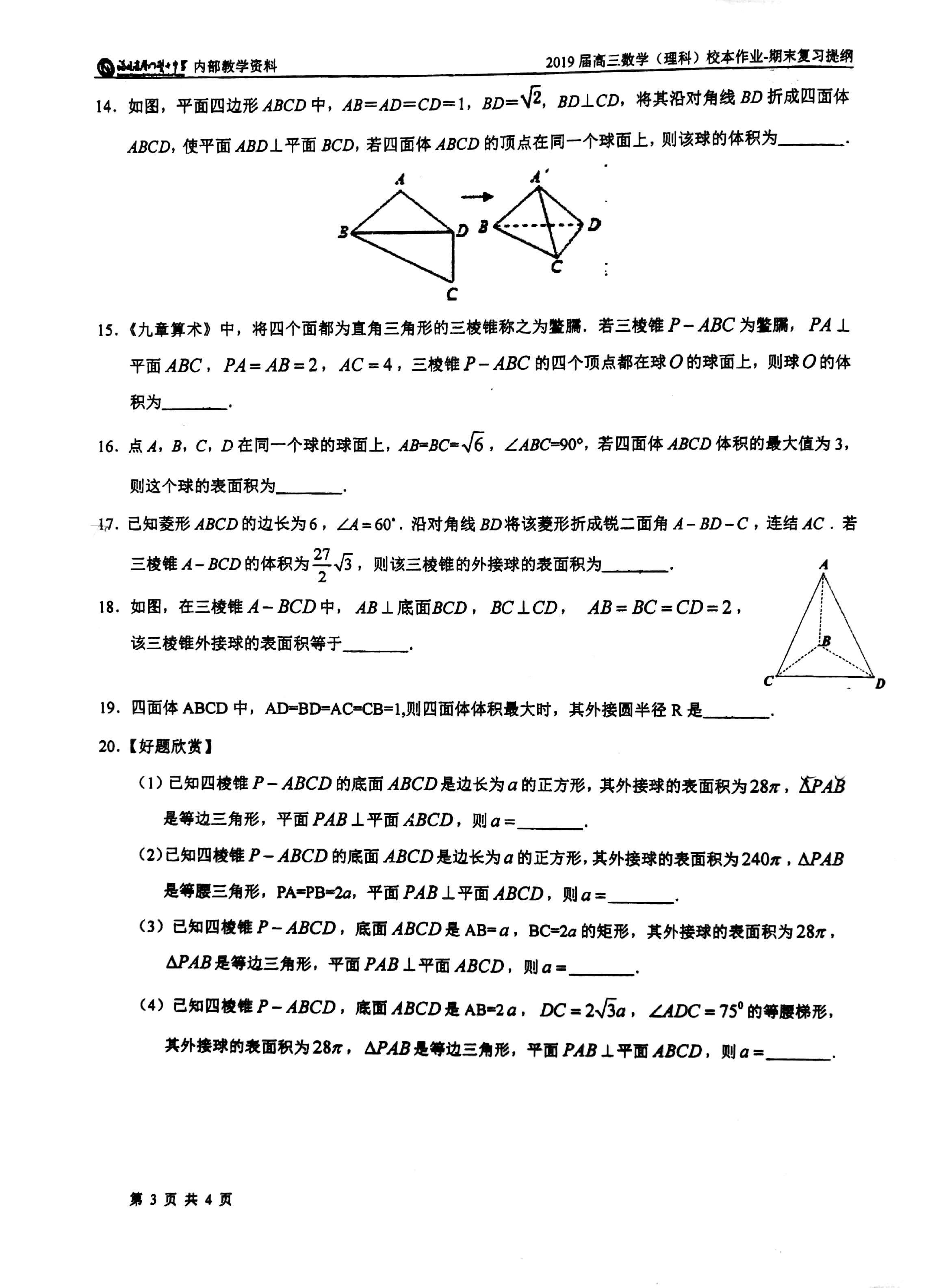 【摘要】福建廈門(mén)雙十中學(xué)2019屆高三上期末復(fù)習(xí)理科數(shù)學(xué)-球體的接切問(wèn)題!更多高考信息可關(guān)注閩州教育高考資訊專(zhuān)欄。