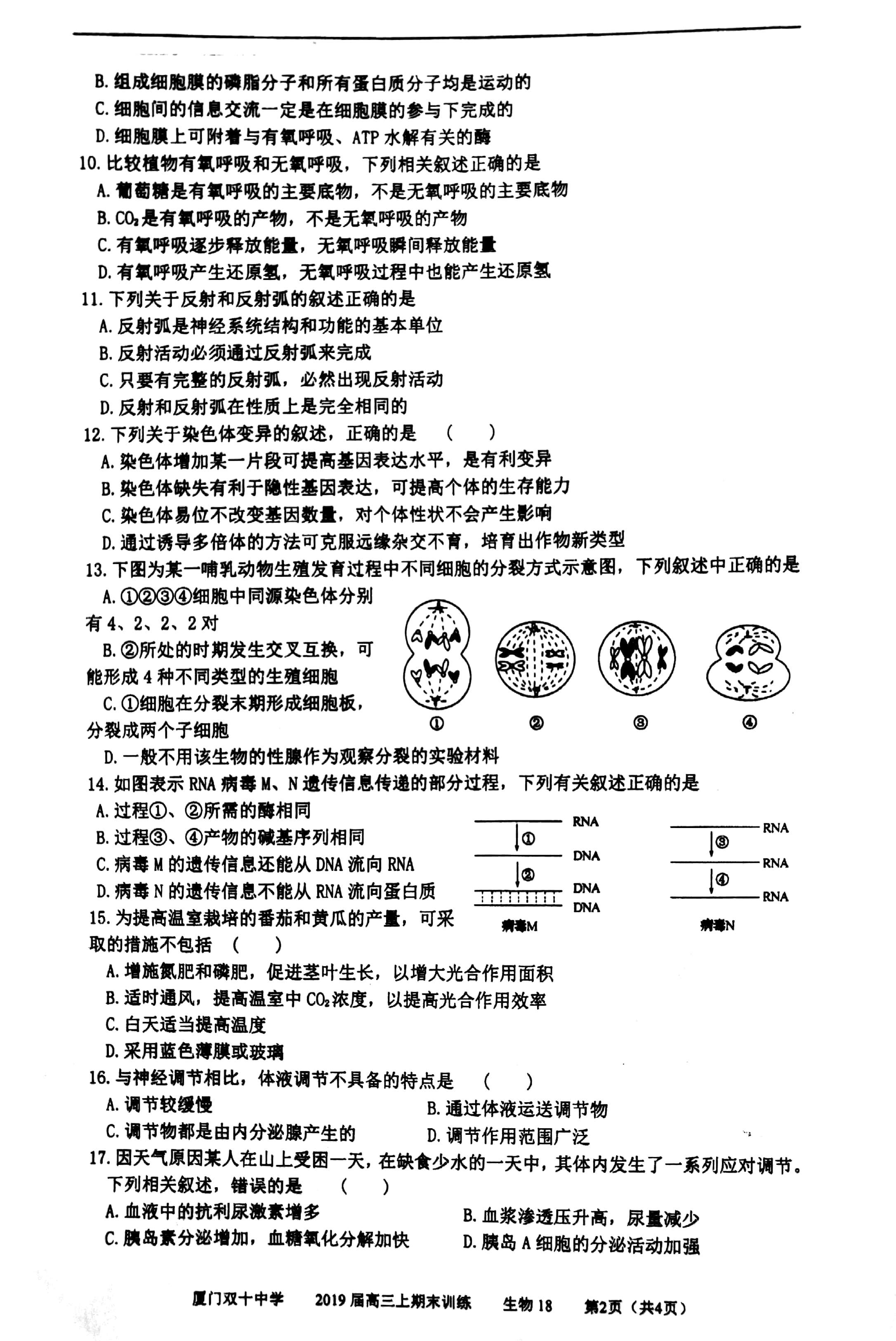 【摘要】福建省廈門雙十中學(xué)2019屆高三上學(xué)期期末生物訓(xùn)練試題!更多高考信息可關(guān)注閩州高考資訊專欄。