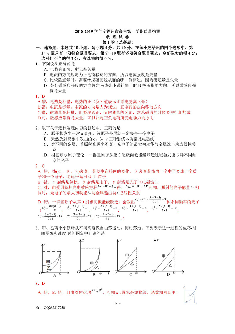 【摘要】2019福建省福州市高三上學(xué)期期末質(zhì)檢物理試題及答案!更多高考信息可關(guān)注閩州教育高考資訊專欄。