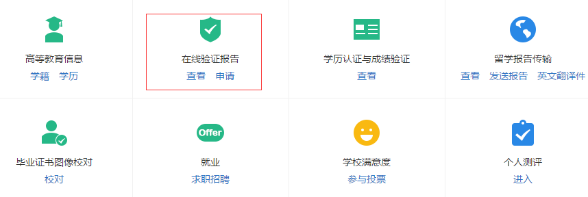 第二步:輸入賬號(hào)密碼登錄學(xué)信網(wǎng)。登錄學(xué)信網(wǎng)后,會(huì)出現(xiàn)如下圖所示,點(diǎn)擊在線驗(yàn)證報(bào)告中的查看或者申請(qǐng)按鈕都可以。