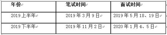 從2019專業(yè)技術(shù)人員資格考試工作計劃得知,2019年教師資格證考試時間如下:
