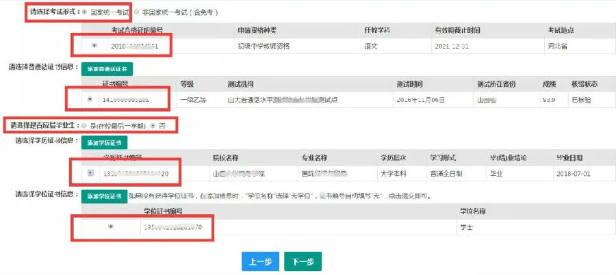 1) 學(xué)歷專(zhuān)業(yè)類(lèi)型:如果所學(xué)專(zhuān)業(yè)是師范類(lèi)選擇師范類(lèi),所學(xué)專(zhuān)業(yè)不是師范類(lèi),選擇非師范類(lèi)。根據(jù)個(gè)人在校專(zhuān)業(yè)視情況選擇。