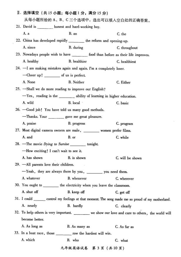【摘要】福建省漳浦縣2019屆九年級(jí)上學(xué)期期末考試英語試題!更多中考信息可關(guān)注閩州教育中考資訊專欄。