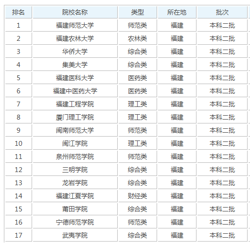 2018年福建二本大學名單數據來源于高考派,多維度綜合考量院校硬實力和軟實力。以下《2018年福建二本大學名單二本院校排名》信息僅供大家報考參考。