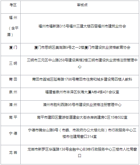 福建2019年各地區(qū)二級建造師考后現(xiàn)場復(fù)核地址
