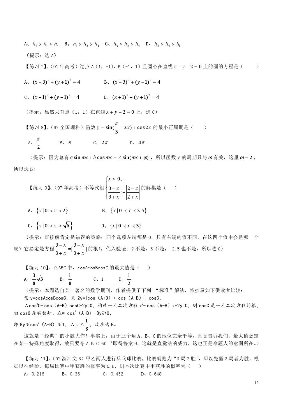 【摘要】高三的同學(xué)們差不多要進(jìn)入第一輪復(fù)習(xí)了,小編為大家整合高中各科知識點匯總,本篇為同學(xué)們分享高中數(shù)學(xué)選擇題巧解。一輪復(fù)習(xí)至關(guān)重要,同學(xué)們趕緊來下載學(xué)習(xí)吧!希望可以幫助大家。更多高考信息可關(guān)注閩州教育高考資訊專欄。