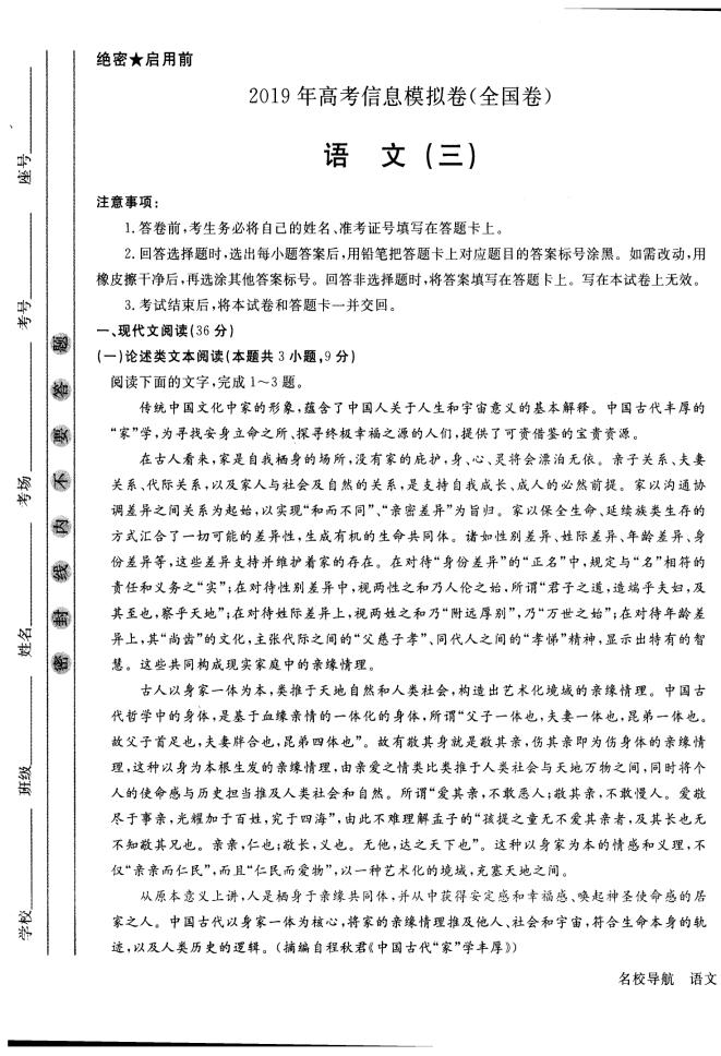 【摘要】2019年高三高考信息模擬卷(全國卷)語文(三)試題及答案,考生們可以針對(duì)題目來更好的復(fù)習(xí)哦,更多高考信息可關(guān)注閩州教育高考資訊專欄。