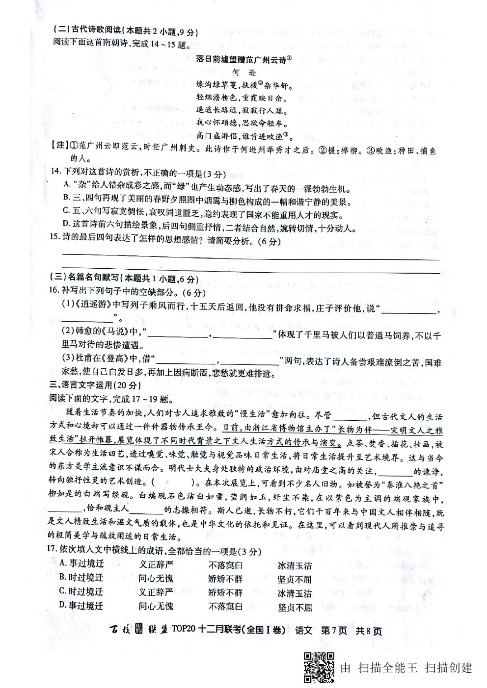 【摘要】百校聯(lián)盟2019屆高三年級(jí)(全國(guó)Ⅰ卷)12月聯(lián)考語(yǔ)文試題!供大家參考!更多高考信息可關(guān)注閩州教育高考資訊專(zhuān)欄。