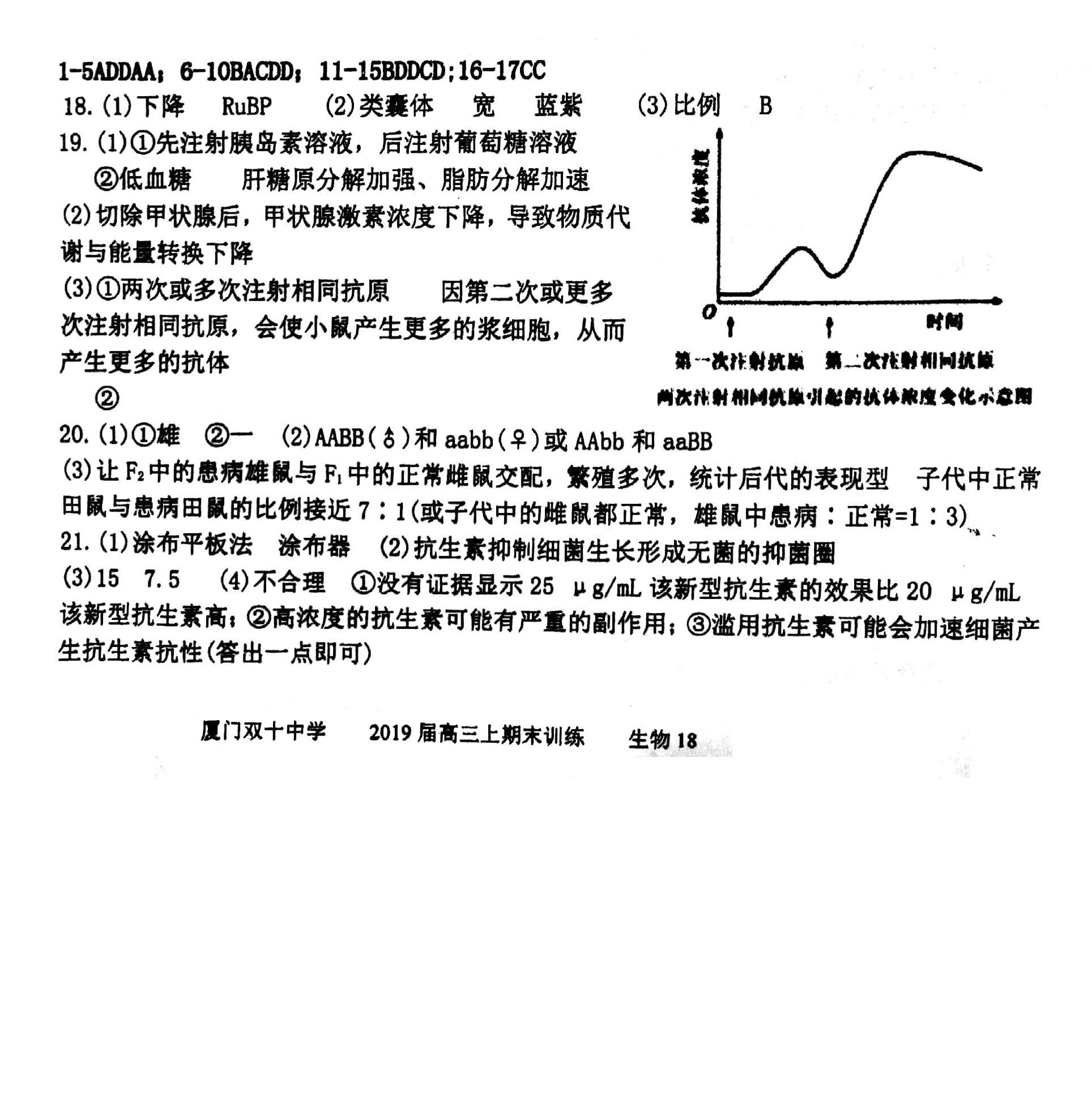 【摘要】福建省廈門雙十中學(xué)2019屆高三上學(xué)期期末生物訓(xùn)練試題!更多高考信息可關(guān)注閩州高考資訊專欄。