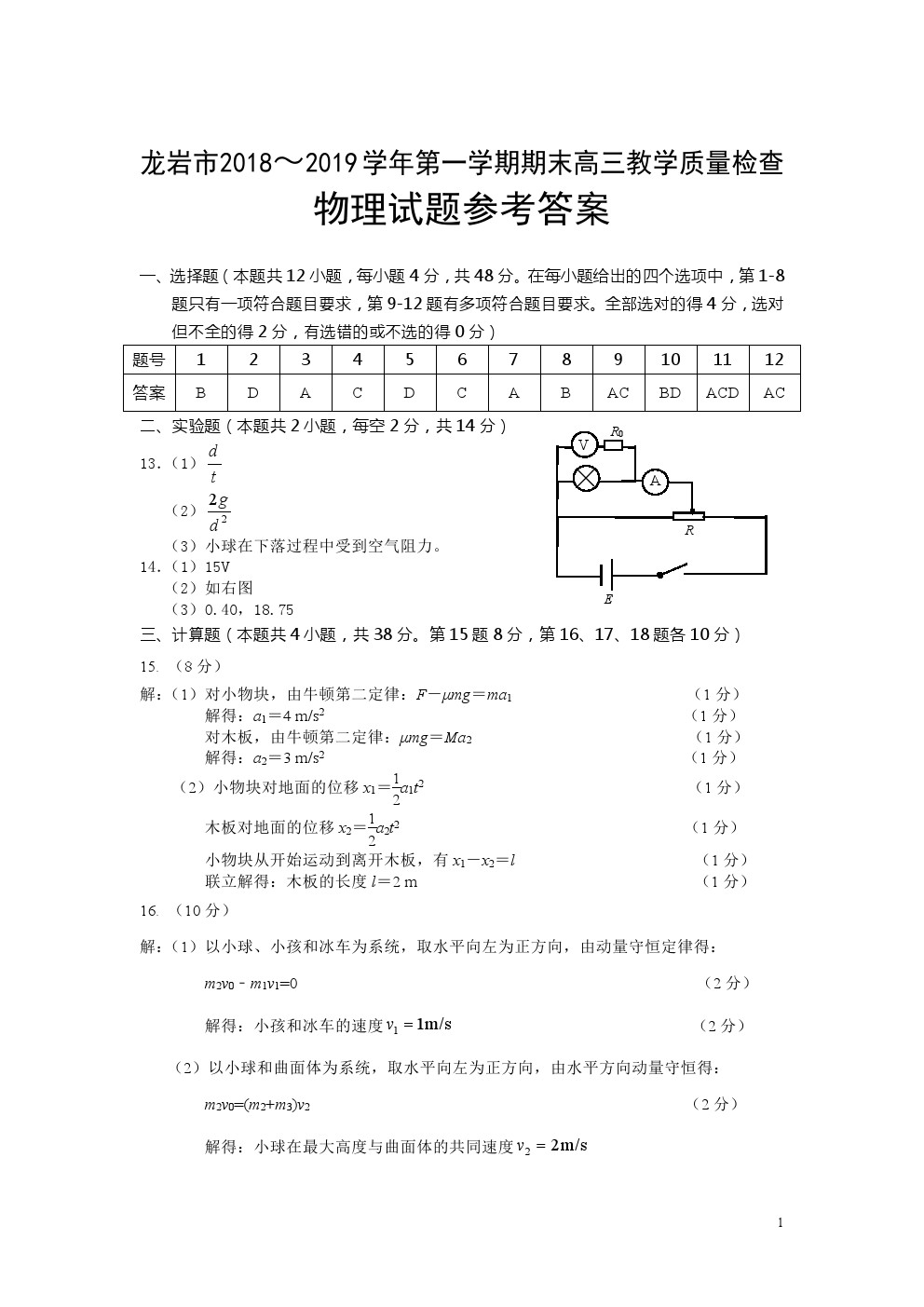 【摘要】福建省龍巖市2019屆高三上學(xué)期期末考試物理試題及答案。更多高考信息可關(guān)注閩州教育高考資訊專欄。