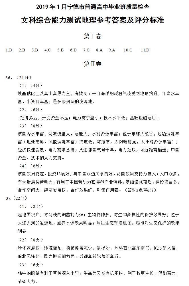 【摘要】福建省寧德市2019屆高三上學期期末質量檢測地理試題及答案!更多高考信息可關注閩州教育高考資訊專欄。