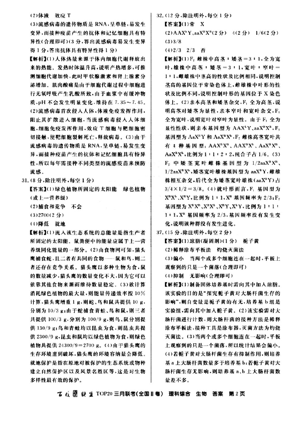【摘要】百校聯(lián)盟2019屆高三TOP20三月聯(lián)考(全國II卷)生物試題及答案!更多高考信息可關(guān)注閩州教育高考資訊專欄。