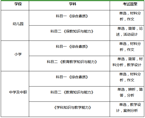 2、教師資格證國(guó)考筆試考試內(nèi)容及題型: