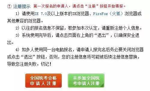 如果您已通過考試并取得考試合格證明,請點(diǎn)擊“全國統(tǒng)考合格申請人注冊”按鈕