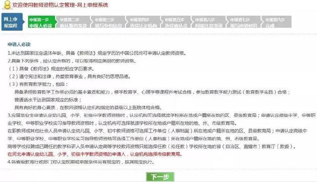 按照提示直至申報(bào)完成并下載打印《教師資格認(rèn)定申請表》和《教師資格認(rèn)定現(xiàn)場受理通知》