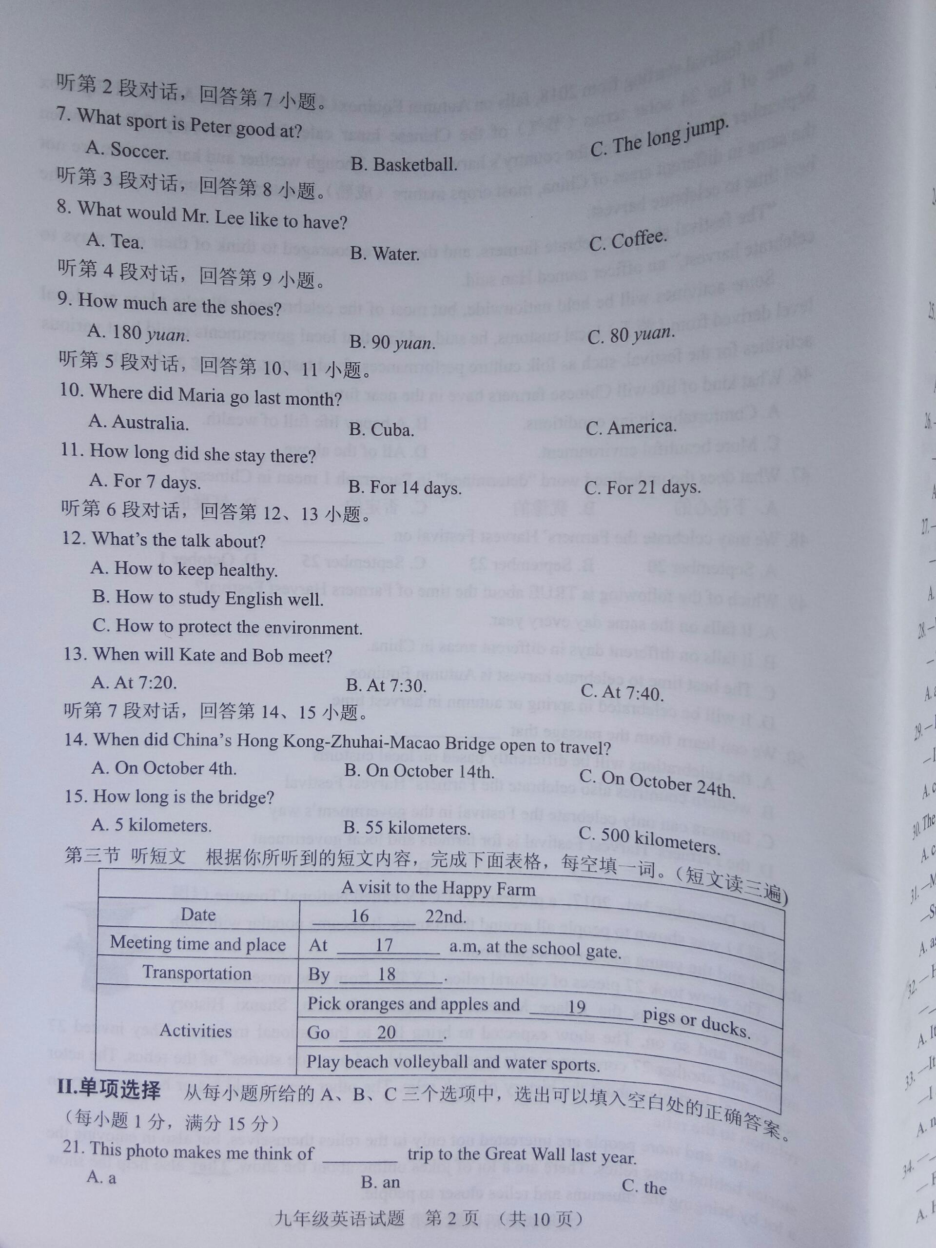 【摘要】福建省南平地區(qū)建甌統(tǒng)考2018-2019上學(xué)期九年級(jí)英語(yǔ)期末考試試題!更多中考信息可關(guān)注閩州教育中考資訊專欄。