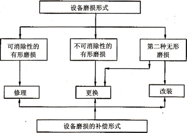 【解析】設(shè)備發(fā)生磨損后,需要進(jìn)行補(bǔ)償,以恢復(fù)設(shè)備的生產(chǎn)能力。補(bǔ)償分局部補(bǔ)償和完全補(bǔ)償。設(shè)備有形磨損的局部補(bǔ)償是修理,設(shè)備無形磨損的局部補(bǔ)償是現(xiàn)代化改裝。設(shè)備有形磨損和無形磨損的完全補(bǔ)償是更新。下圖為設(shè)備磨損的補(bǔ)償形式。